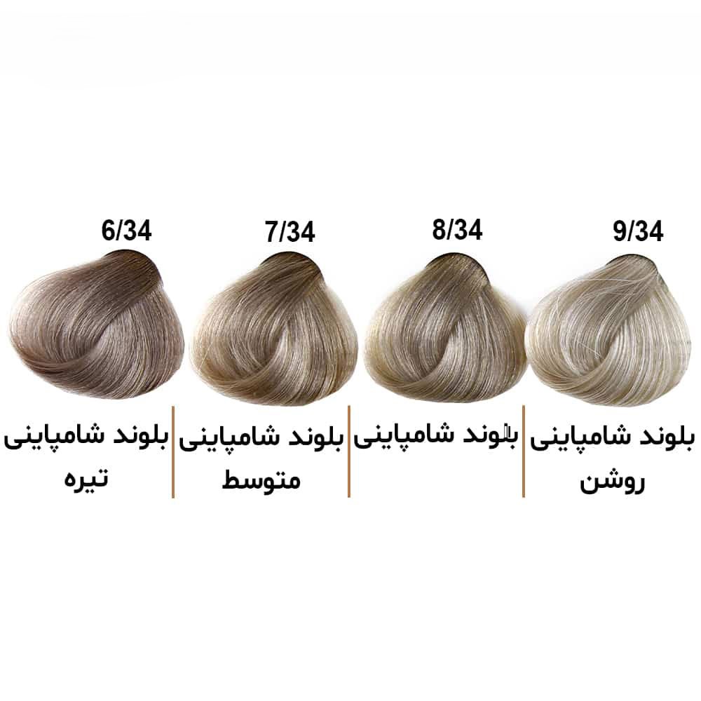6.34 بلوند شامپاینی تیره, 7.34 بلوند شامپاینی متوسط, 8.34 بلوند شامپاینی, 9.34 بلوند شامپاینی روشن